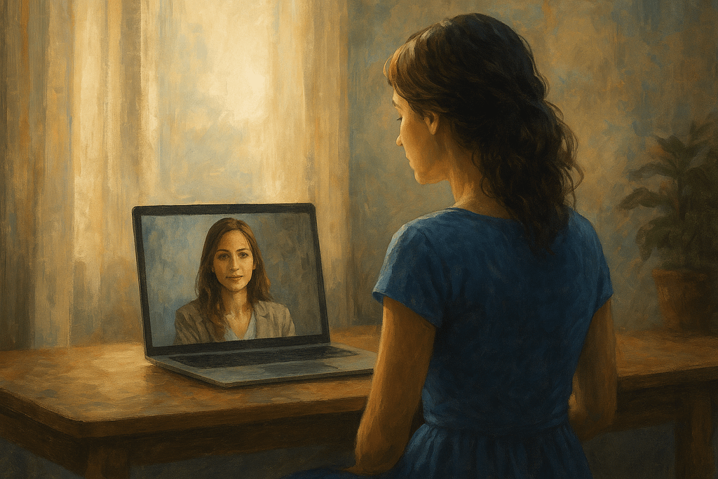 Und vielleicht der wichtigste Tipp: Gehen Sie offen in die erste Sitzung. Es ist normal, dass es sich anfangs ungewohnt anfühlt, in einen Bildschirm zu schauen. Viele merken schon nach wenigen Minuten, dass der Fokus auf das Gespräch und die Beziehung wandert und dass der Bildschirm irgendwann fast vergessen ist.